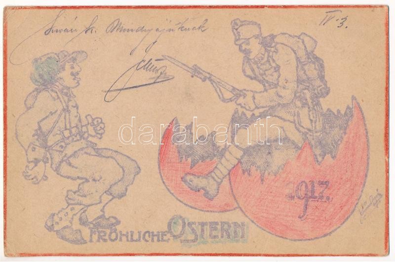 1917 Fröhliche Ostern! Feldpostkarte / WWI Austro-Hungarian K.u.K. military field postcard with Easter greetings + "K.u.K. Infanteriebataillon Nr. 3/86. Feldpostamt No. 636." (E