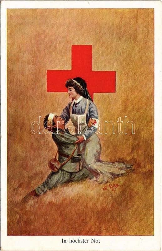 In höchster Not / WWI Austro-Hungarian K.u.K. military art postcard, R... https://www.darabanth.com/hu/419-Gyorsarveres/419.0/Kepeslapok/Katonai~1500034/In-hochster-Not-WWI-Austro-Hungarian-KuK-military-art-postcard-Red-Cross-nurse-with-injured-s~II2644726