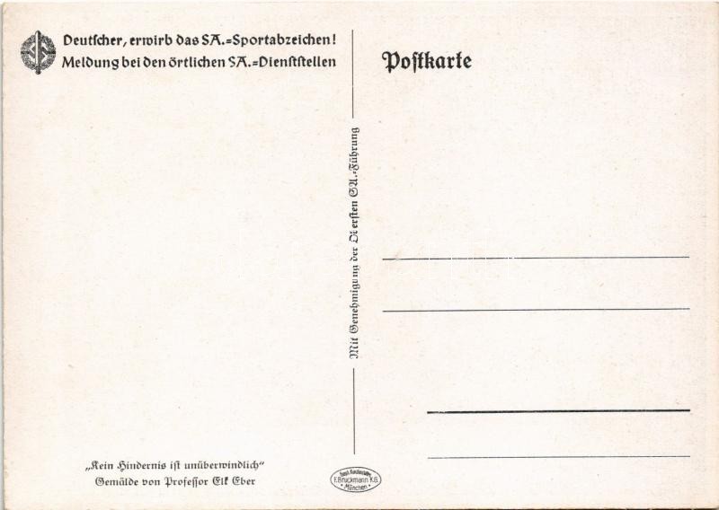 Kein Hindernis ist unüberwindlich. Deutscher, erwirb das SA.-Sportabzeichen! Meldung bei den örtlichen SA.-Dienststellen / WWII German Nazi military propaganda. Sturmabteilung Sports Badge s: Porfessor Elk Eber