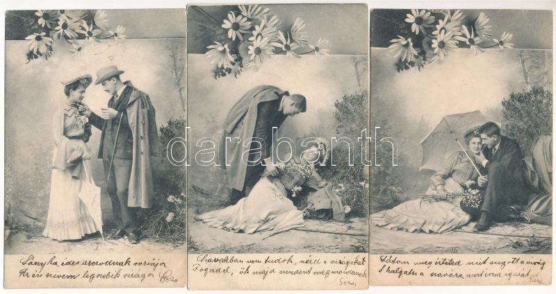 Leírás: 3 db RÉGI képeslap: romantikus szerelmespárok / 3 pre-1905 postcards: romantic lovers, couples