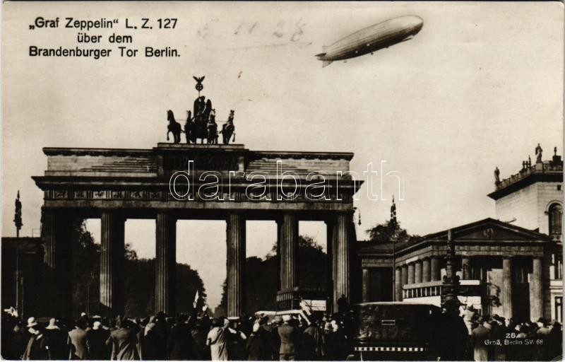 Graf Zeppelin-Luftschiff LZ 127 über dem Brandenburger Tor (Berlin) / ... https://www.darabanth.com/hu/419-Gyorsarveres/419.0/Kepeslapok/Leghajo~1500042/Graf-Zeppelin-Luftschiff-LZ-127-uber-dem-Brandenburger-Tor-Berlin-German-airship~II2644115