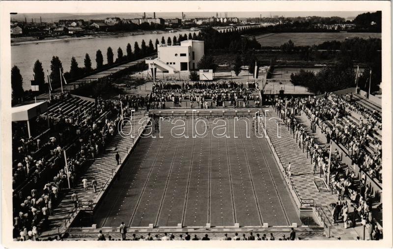 Leírás: 1937 Budapest XIII. Margitsziget, Nemzetközi vízipóló (Vízilabda) torna a Horthy-kupáért, sport + So. Stpl.