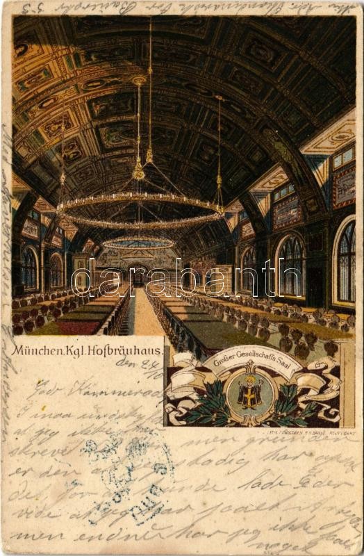 1909 München, Munich; Kgl. Hofbräuhaus, Großer Gesellschafts Saal. lit... https://www.darabanth.com/hu/419-Gyorsarveres/419.0/Kepeslapok/Nemetorszag~1500117/1909-Munchen-Munich-Kgl-Hofbrauhaus-GroC39Fer-Gesellschafts-Saal-litho-EK~II2647873