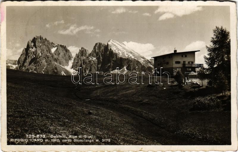 1938 Alpe di Siusi (Südtirol), Dolomiti, Rifugio Icaro, verso Sassolun... https://www.darabanth.com/hu/419-Gyorsarveres/419.0/Kepeslapok/Olaszorszag~1500121/1938-Alpe-di-Siusi-Sudtirol-Dolomiti-Rifugio-Icaro-verso-Sassolungo-mountain-tourist-house-~II2650838