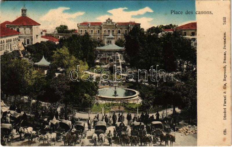 Damascus, Damas; Place des canons / square, horse-drawn carriages (fl) https://www.darabanth.com/hu/419-Gyorsarveres/419.0/Kepeslapok/Sziria~1500105/Damascus-Damas-Place-des-canons-square-horse-drawn-carriages-fl~II2649910