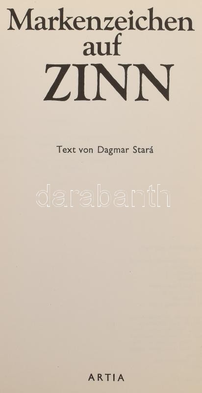 Dagmar Stará: Markenzeichen auz Zinn. Praha, 1977., Artia. Német nyelv... https://www.darabanth.com/hu/419-Gyorsarveres/419.0/Konyvek/Konyvek-Epiteszet-muveszet~1000009/Dagmar-Stara-Markenzeichen-auz-Zinn-Praha-1977-Artia-Nemet-nyelven-On-jelzesekkel-gazdago~II2639777