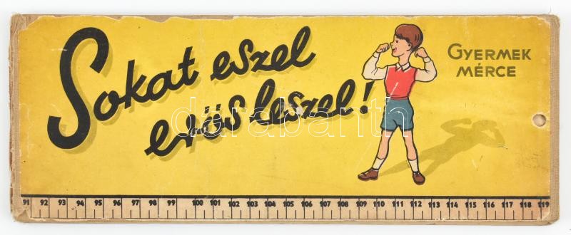 Leírás: Sokat eszel, erős leszel! Gyermek mérce. Bp., (1953), Athenaeum-ny. Félvászon-kötés, kihajtható (max. 120 cm), kissé sérült, tollas feljegyzésekkel.