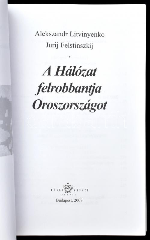 Leírás: Alekszandr Litvinyenko - Jurij Felstinszkij: A Hálózat felrobbantja Oroszországot. A polónium-gyilkosság gyökrei. Ford.: Láng Júlia. Bp., 2007., Püski-Masszi. Kiadói papírkötés.