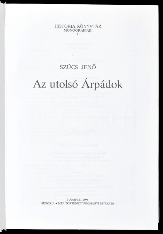 Szűcs Jenő: Az utolsó Árpádok. História Könyvtár Monográfiák 1. Bp., 1993, a História MTA Történettudományi Intézete kiadása. Kiadói kartonált papírkötésben, jó állapotban.