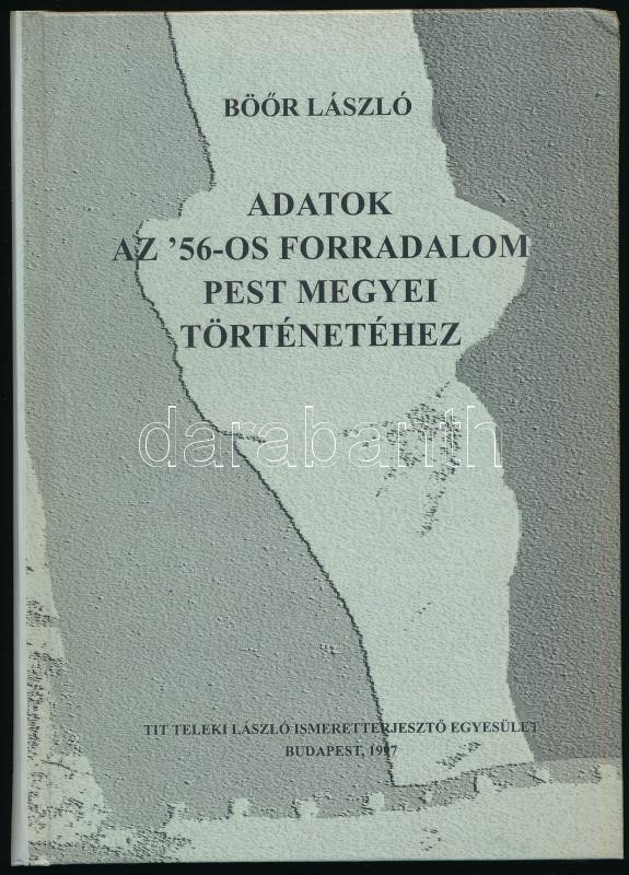 Böőr László: Adatok az '56-os forradalom Pest megyei történetéhez. Bp.,1997., TIT Teleki László Ismeretterjesztő Egyesület. Kiadói kartonált papírkötés. Megjelent 1000 példányban.