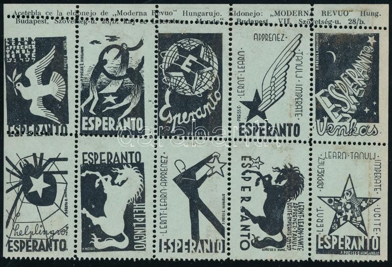Eszperantó 10 különböző levélzárót tartalmazó összefüggés https://www.darabanth.com/hu/419-Gyorsarveres/419.0/Magyar-filatelia-es-postatortenet/Parafilatelia~500018/Eszperanto-10-kulonbozo-levelzarot-tartalmazo-osszefugges~II2499873