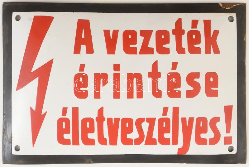 "A vezeték érintése életveszélyes!" feliratos zománcozott fém tábla, k... https://www.darabanth.com/hu/419-Gyorsarveres/419.0/Mutargy-papirregiseg-egyeb/Bolhapiac~500013/A-vezetek-erintese-eletveszelyes-feliratos-zomancozott-fem-tabla-kis-serulesekkel-2~II2650321