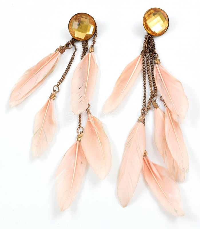 Leírás: Bizsu tollas fülbevalópár kis kopásnyomokkal