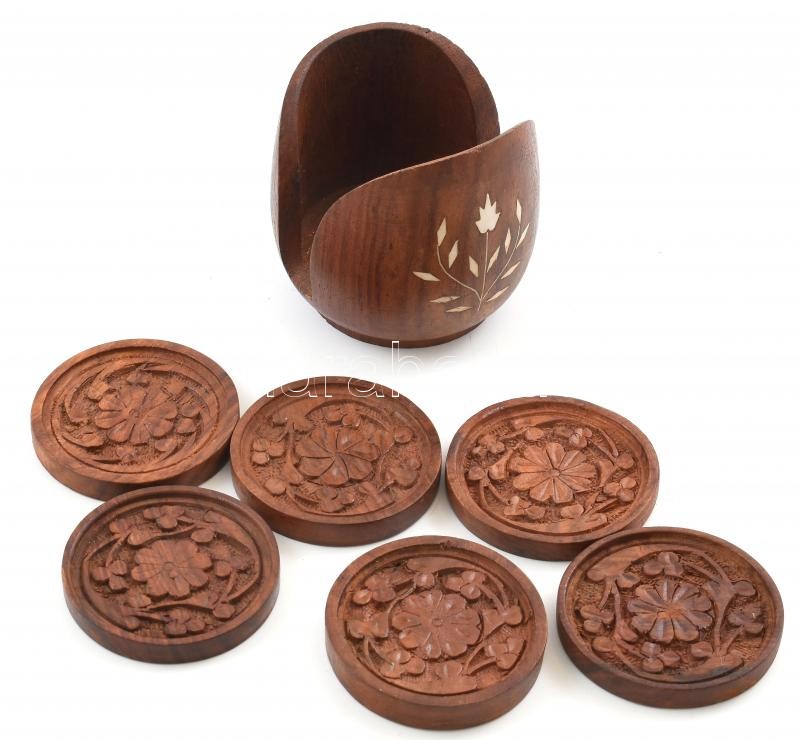 Leírás: Pohártartó alátét készlet, India, jelzett, m:9cm, d:7cm