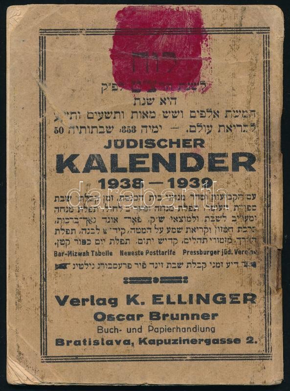 Leírás: cca 1939 Zsidó kalendárium Jüdischer Kalender K. Ellinger.