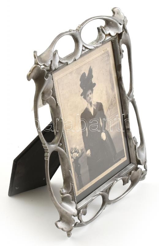 Leírás: Ón szecessziós fotókeret, kitámasztós, 17x12cm