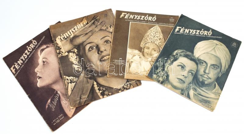 Leírás: 1945-1946 Fényszóró c. folyóirat 4 db száma: I. évf. 5., 16., 18. sz., II. évf. 2. sz. Fekete-fehér képekkel, változó állapotban.