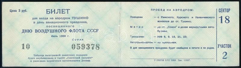 Leírás: 1958 Kihajtható belépőjegy, szovjet repülőnapra