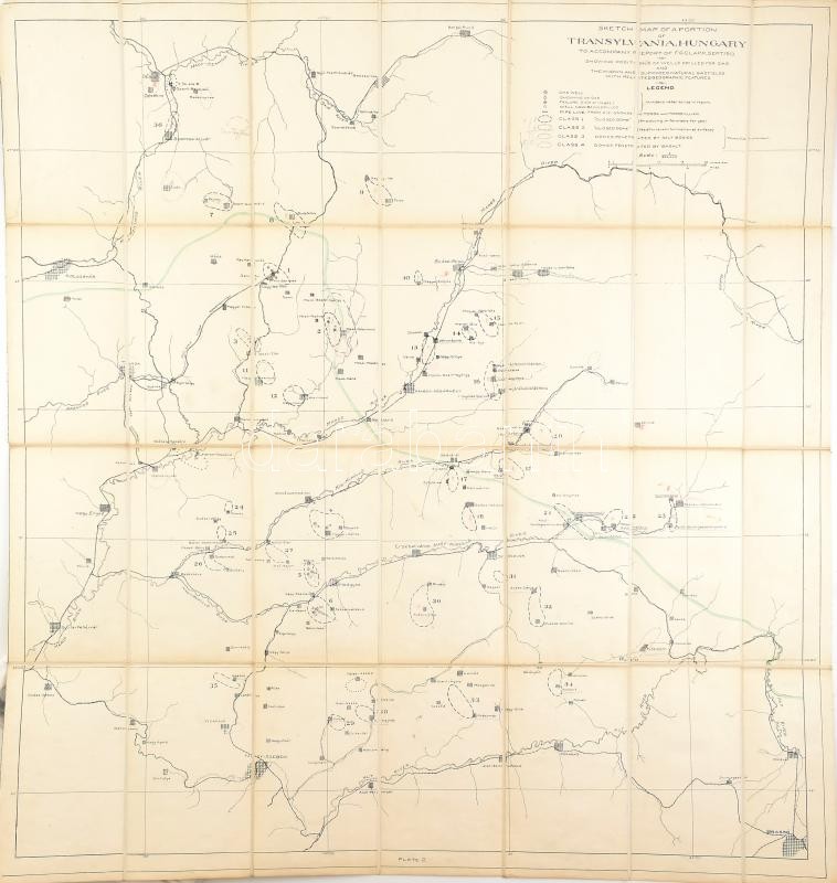 1913 Sketch Map of a portion of Transylvania to accompany report of F. G. Clapp, Erdély térképe gázmezők és gázkutak pozícióival, 1:200 000, kasírozva, hajtva, 88x96 cm