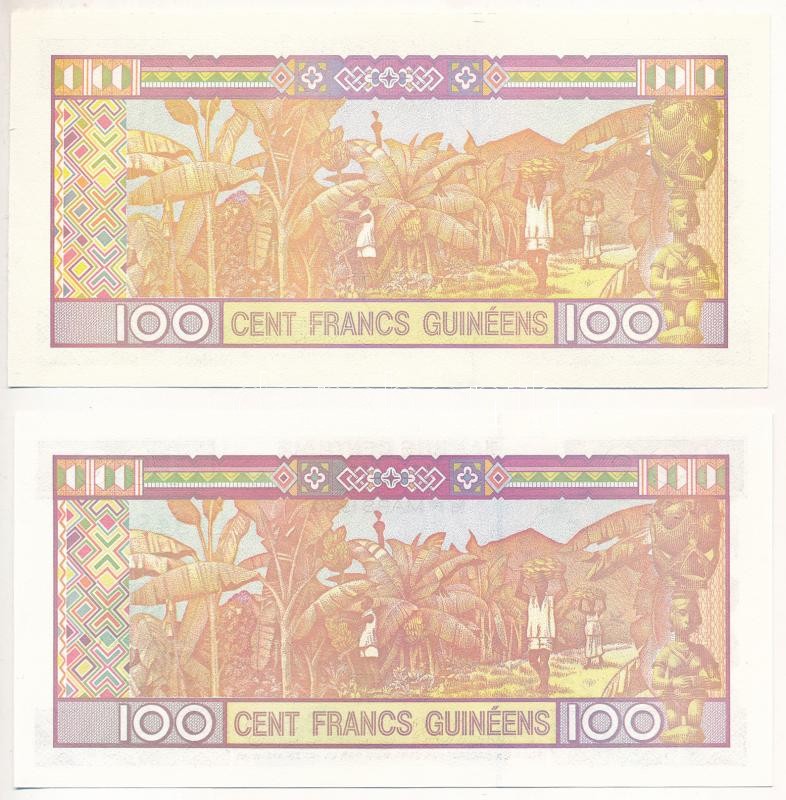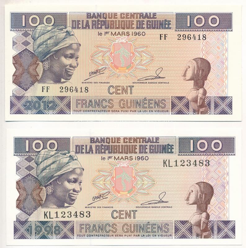 Leírás: Guinea 1998. 100Fr "KL123483" + 2012. 100Fr "FF 296418" T:I
