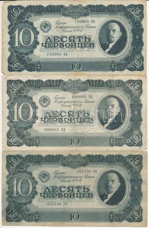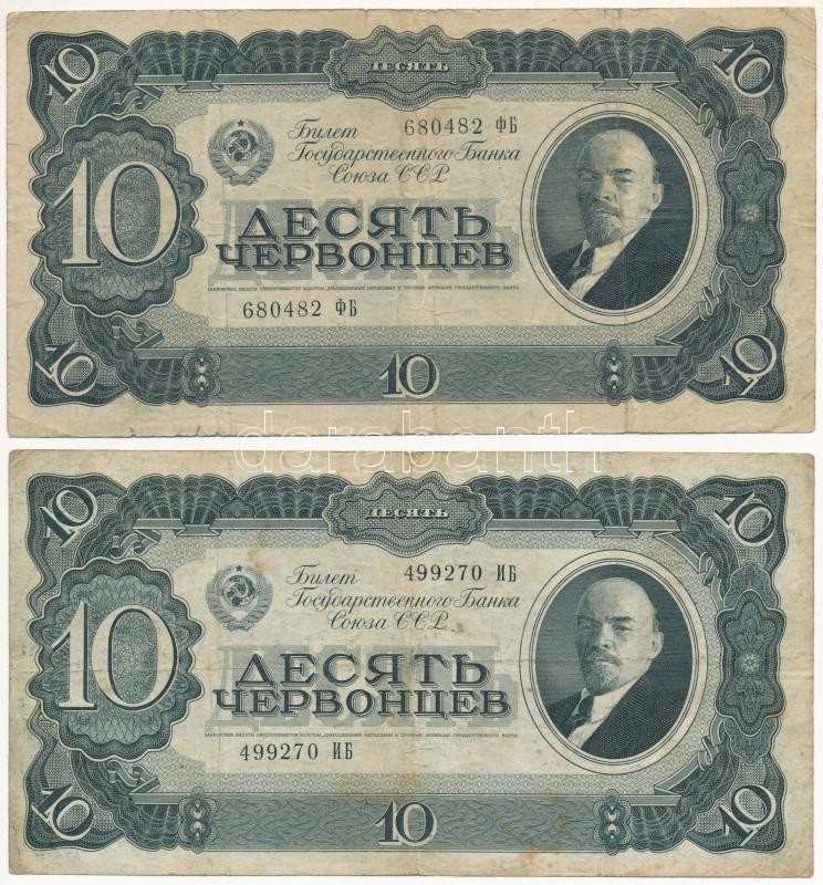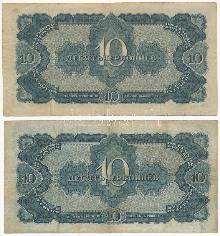 Soviet Union 193... https://www.darabanth.com/hu/419-Gyorsarveres/419.0/Numizmatika/Kulfoldi-bankjegyek~2000014/Szovjetunio-1937-10Ch-5x-TIII-kis-szakadas-folt-Soviet-Union-1937-10-Chervontsev-5x-CF-s~II2650600