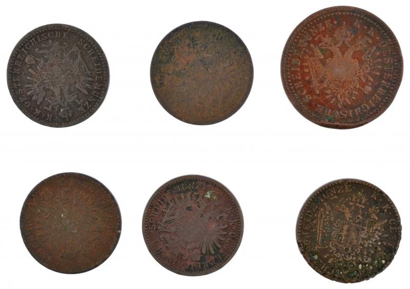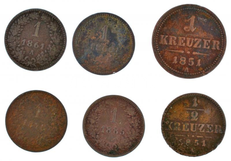 Ausztria 1851A 1/2kr Cu + 1851A 1kr Cu + 1860A 1kr Cu + 1861A 1kr Cu + 1878. 1kr Cu + 1885. 1kr Cu T:3,3-