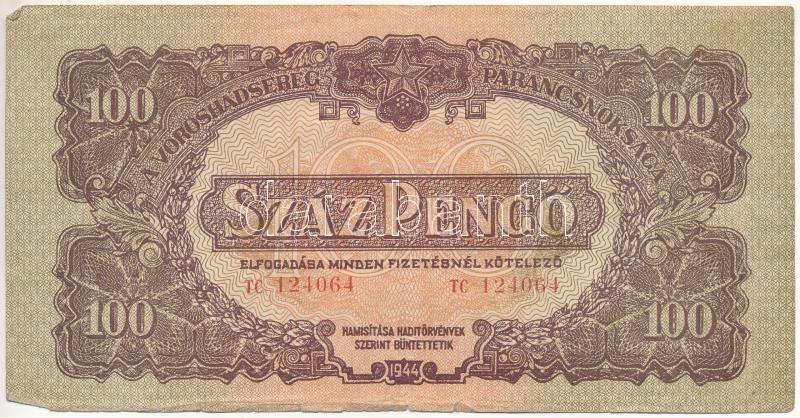 Leírás: 1944. 100P "TC 124064" "A Vöröshadsereg Parancsnoksága" T:III kis szakadások