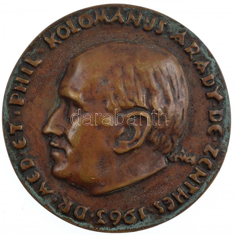 Leírás: Csúcs Ferenc (1905-1999) 1963. "Dr. Arady Fülöp Kolomanus" angol nyelvű, egyoldalas bronz emlékplakett (95mm) T:2 patina, a hátoldalán ragasztó