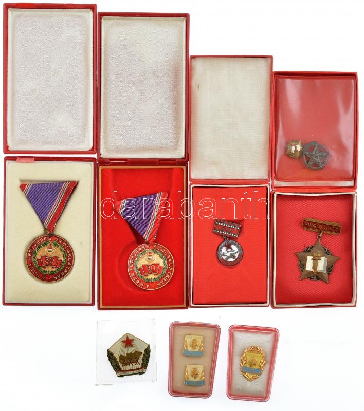 6db-os vegyes jelvény és kitüntetés tétel, közte "MHSZ", "Szocialista Hazánkért", "Hűséggel a Nép egészségéért", "A Haza fegyveres szolgálatában", "Kiváló Újító" T:1,1-