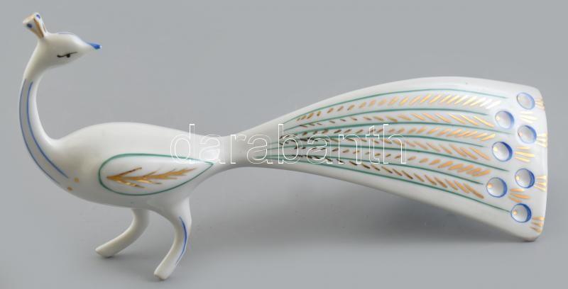 Leírás: Hollóházi porcelán páva, kézzel festett, jelzett, hibátlan, 20x10 cm