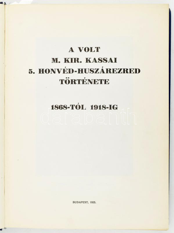 A volt m. kir. kassai 5. honvéd-huszárezred története 1868-tól 1918-ig.