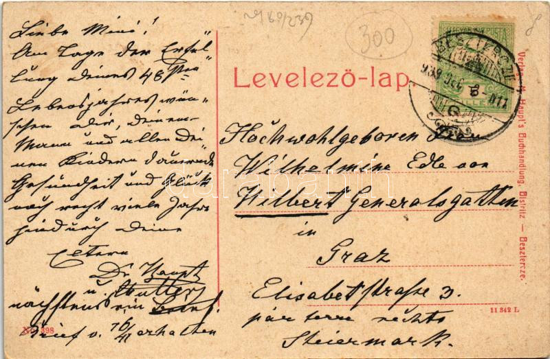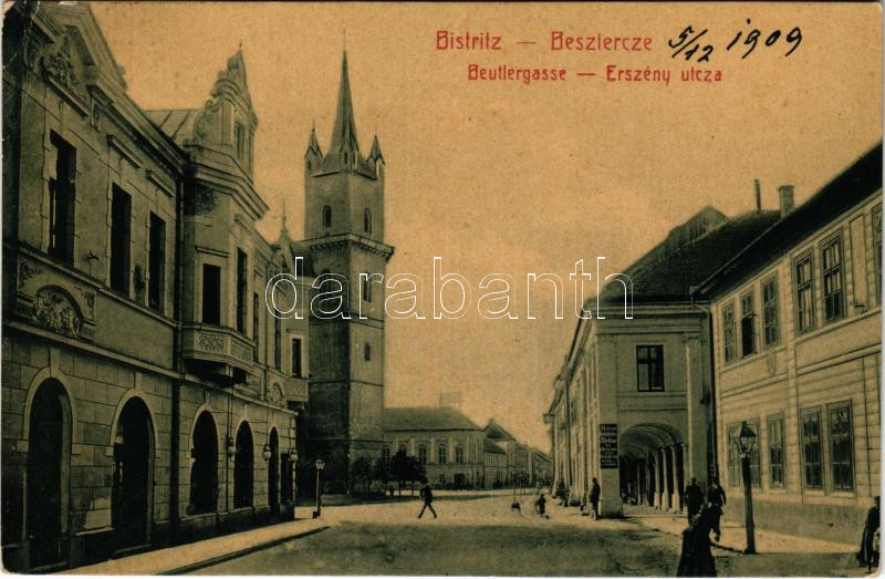 1909 Beszterce, Bistritz, Bistrita; Beutlergasse / Erszény utca. No. 3... https://www.darabanth.com/hu/42-Nagyaukcio/42.1/Kepeslapok/Erdely~17445/1909-Beszterce-Bistritz-Bistrita-Beutlergasse-Erszeny-utca-No-398-WL-M-Haupt~II3122316