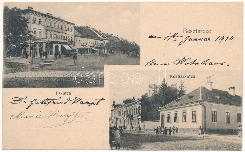 1909 Beszterce, Bistritz, Bistrita; Kórház utca, Fa utca, Kollmann és ... https://www.darabanth.com/hu/42-Nagyaukcio/42.1/Kepeslapok/Erdely~17445/1909-Beszterce-Bistritz-Bistrita-Korhaz-utca-Fa-utca-Kollmann-es-Keresztes-uzlete-Bartha~II3122315