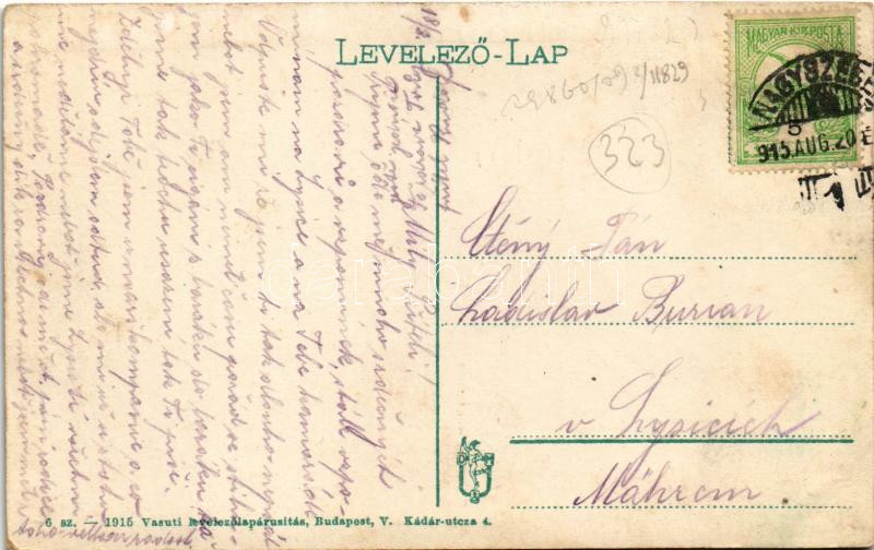 1915 Nagyszeben, Hermannstadt, Sibiu; Állomás tér és villamosmű a pályaudvarral, vasútállomás. Vasúti levelezőlapárusítás 6. sz. 1915. / Bahnhof u. Elektrizitätswerk / railway station, square, electric power plant, power station (ázott sarok / wet corner)