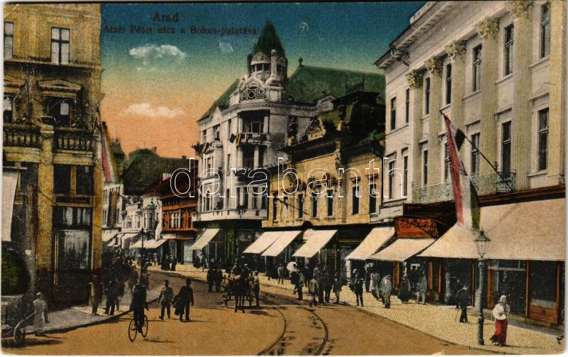 Arad, Atzél Péter utca, Bohus palota, üzletek. Kerpel Izsó kiadása / s... https://www.darabanth.com/hu/42-Nagyaukcio/42.1/Kepeslapok/Erdely~17445/Arad-Atzel-Peter-utca-Bohus-palota-uzletek-Kerpel-Izso-kiadasa-street-view-palace-shops~II3062383