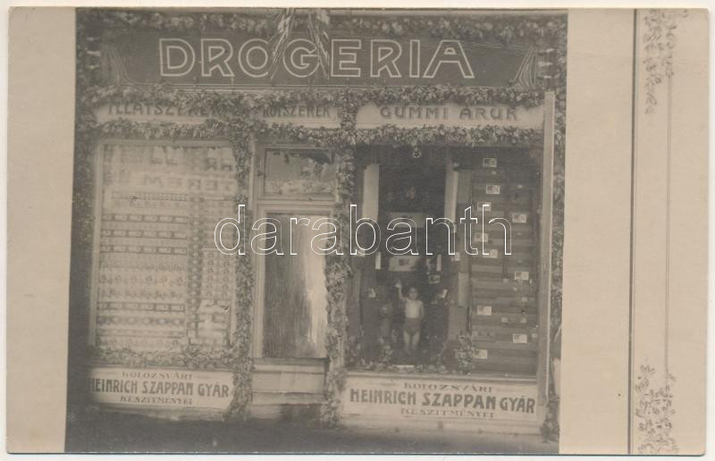 Kolozsvár, Cluj; Drogéria, gyógyszertár / drugstore, pharmacy. photo https://www.darabanth.com/hu/42-Nagyaukcio/42.1/Kepeslapok/Erdely~17445/Kolozsvar-Cluj-Drogeria-gyogyszertar-drugstore-pharmacy-photo~II3062468