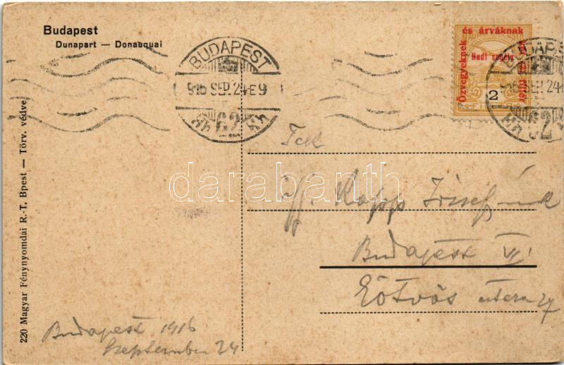 1916 Budapest V. Dunapart. Magyar zászlós hazafias keret II. Vilmos császárral, Ferenc Józseffel és katonákkal. Art Nouveau (kopott sarkak / worn corners)