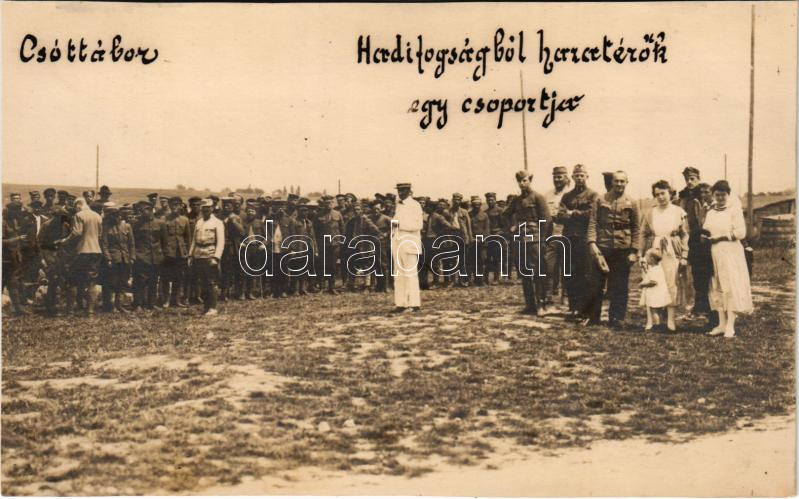 Csót tábor, Hadifogságból hazatérők egy csoportja. photo (vágott / cut... https://www.darabanth.com/hu/42-Nagyaukcio/42.1/Kepeslapok/Magyarorszag~17443/Csot-tabor-Hadifogsagbol-hazaterok-egy-csoportja-photo-vagott-cut~II3113806
