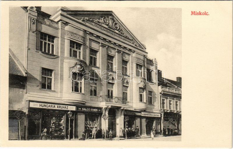 Miskolc, Első Magyar Általános Biztosító Társaság, Hungária Áruház, Sa... https://www.darabanth.com/hu/42-Nagyaukcio/42.1/Kepeslapok/Magyarorszag~17443/Miskolc-Elso-Magyar-Altalanos-Biztosito-Tarsasag-Hungaria-Aruhaz-Salgo-Armin-uzlete-Kobrak~II3113274