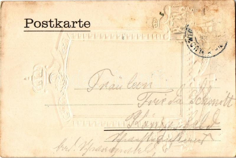 1826-1906 Jubiläumskarte zum 80-jährigen Geburtstage. Großherzog Friedrich I. von Baden / Frederick I, Grand Duke of Baden 80the birthday anniversary memorial postcard. Art Nouveau, Emb. litho (lyukak / pinholes)