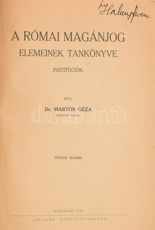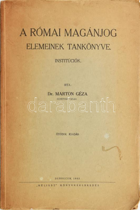 Dr. Marton Géza A római magánjog elemeinek tankönyve