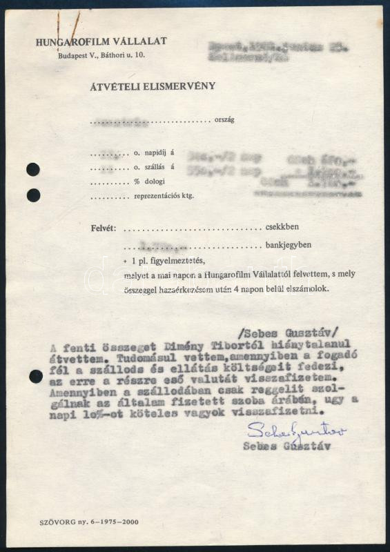 Leírás: 1981 Sebes Gusztáv (1906-1986) az Aranycsapat edzőjének autográf aláírással ellátott devizaátvételi igazolása