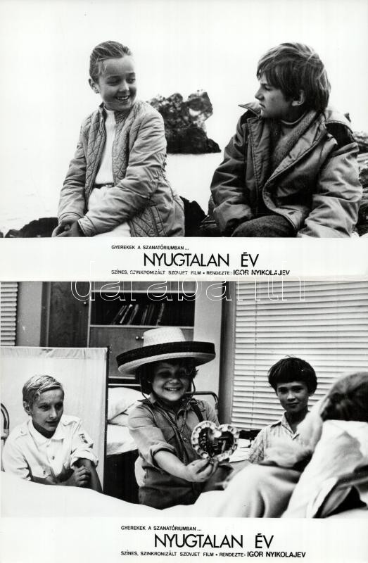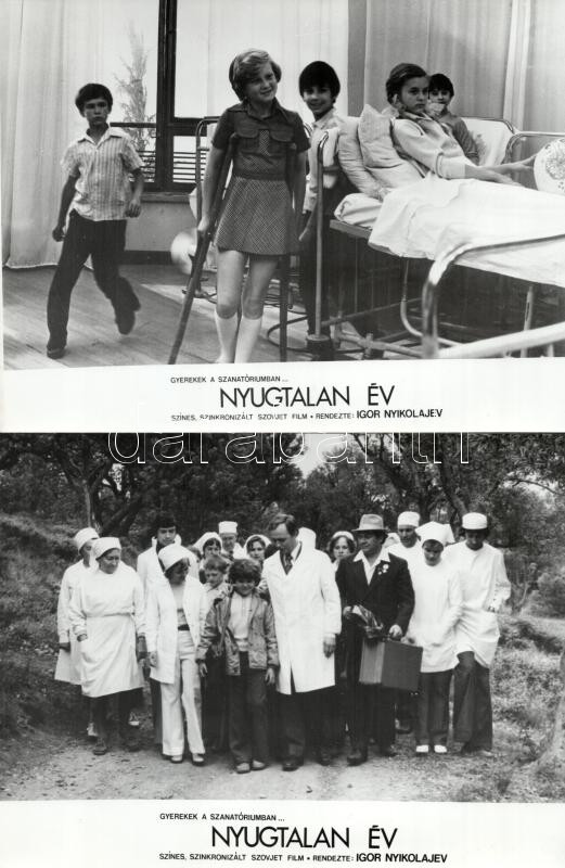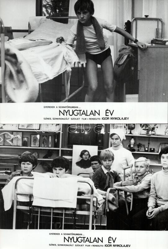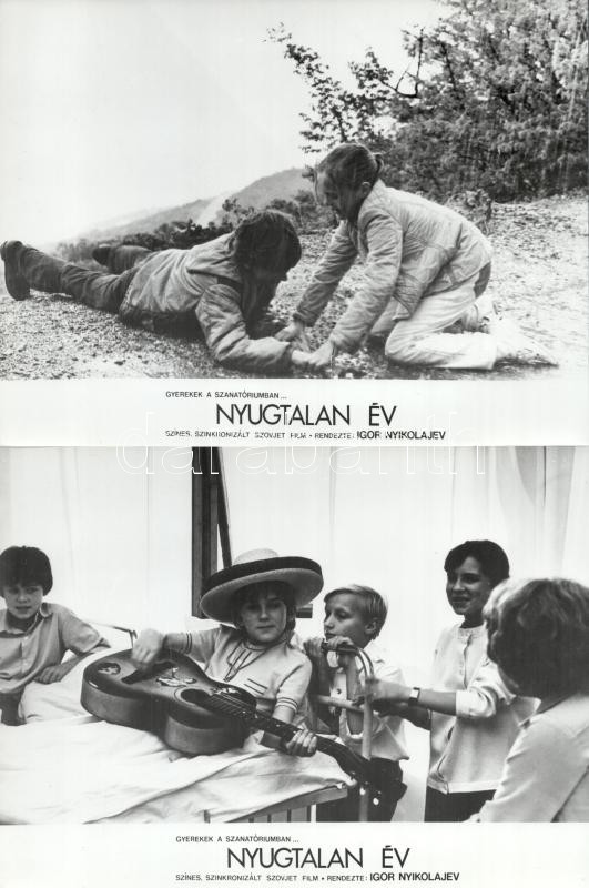 cca 1989 előtt készült ,,Nyugtalan év" című szovjet film jelenetei és szereplői, 16 db vintage produkciós filmfotó (vitrinfotó, lobbyfotó) ezüst zselatinos fotópapíron, a használatból eredő (esetleges) kisebb hibákkal, 18x24 cm