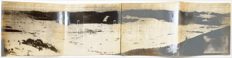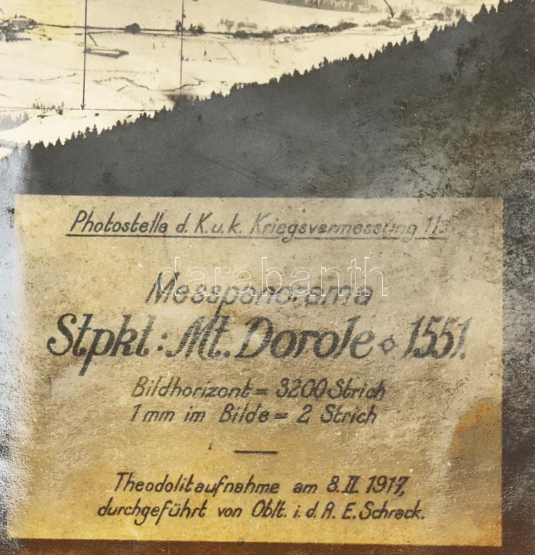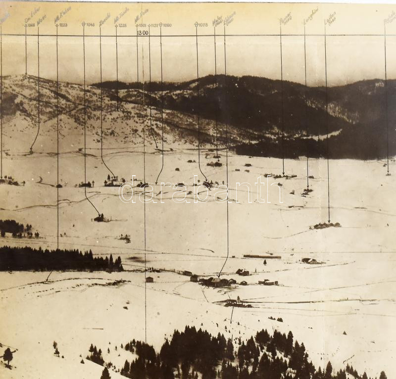 1917 K.u.k. panorámafelvétel az olasz Alpokban levő Asiago-fennsíkról a különböző objektumok elhelyezkedési méretével, a felvétel adataival, jó állapotban, 13,5×59,5 cm