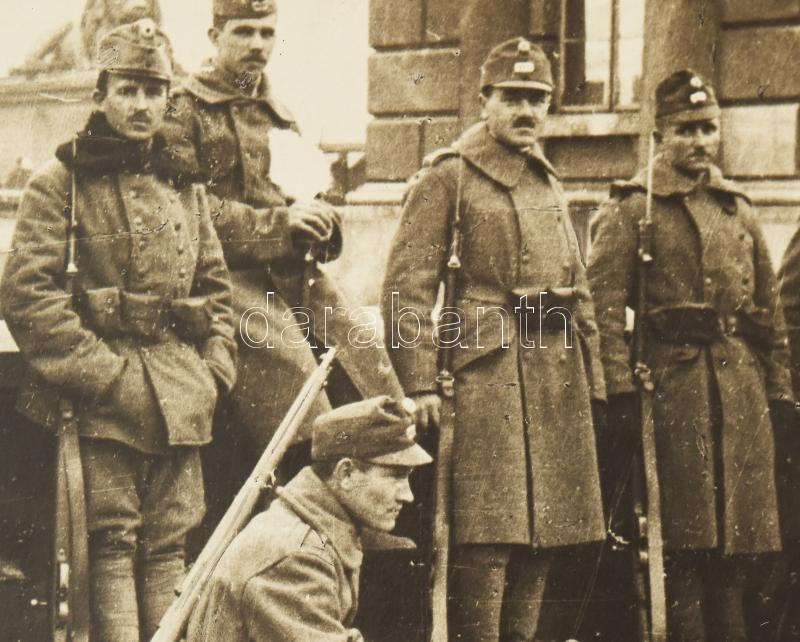 Leírás: 1918/19 Népőrség a Lánchíd előtt gépfegyverrel 18x12 cm /