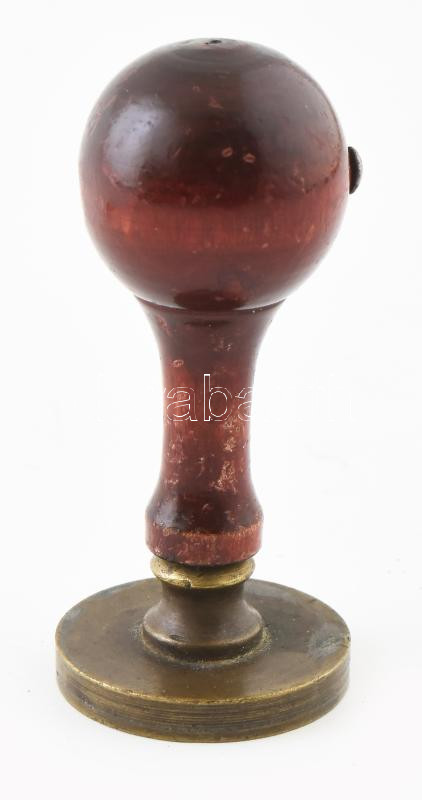 Leírás: "1906 Borsod vármegye Sajószentpéter község" feliratos, címeres pecsétnyomó réz d: 33 mm, Fa nyéllel