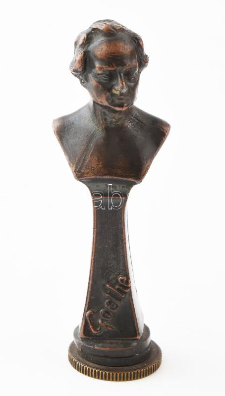 Leírás: Pecsétnyomó Goethe büszttel. Bronz, monogramos, XIX. sz. vége. 8 cm