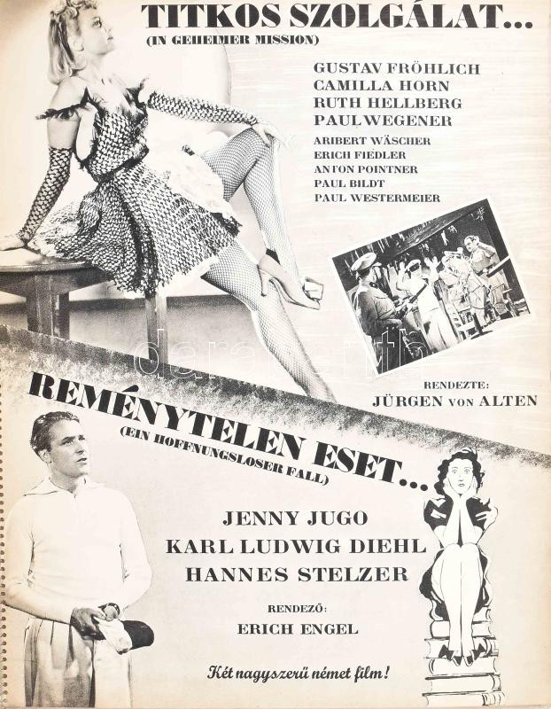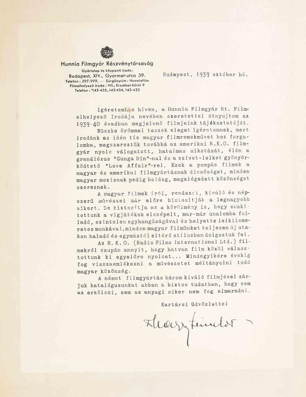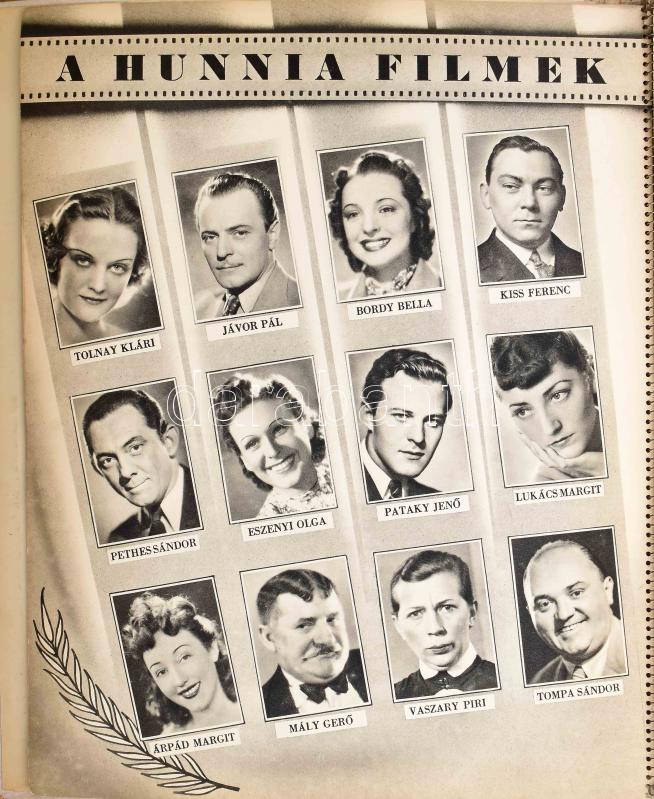 Hunnia Filmgyár R.T. 1939-40. A Hunnia Filmgyár R.T. képes ismertető kiadványa az 1939-40. évadban megjelenő filmjeiről. Benne: A Hunnia filmek művészgárdája (Tolnay Klári, Jávor Pál, Bordy Bella, stb.); Amanda két élete (főszerepben: Fred Astaire); Álomkapu (Katharine Hepburn, Adolf Menjou); A nőnek mindig sikerül (Tolnay Klári, Turay Ida, Szeleczky Zita); stb. Bp., Athenaeum-ny., 16 sztl. lev. Kiadói félvászon-kötésben, spirálfűzött, némileg viseltes borítóval, belül a lapok jó állapotban.