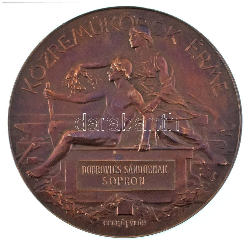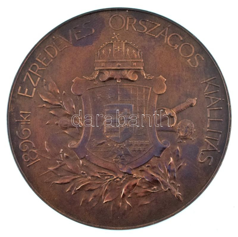 Beck Ötvös Fülöp (1873-1945) 1896. "1896-iki EZREDÉVES ORSZÁGOS KIÁLLÍTÁS / KÖZREMŰKÖDŐK ÉRME" bronz emlékérem, adományozva Dobrovics Sándor számára (70mm) T:AU / Hungary 1896. "1896-iki EZREDÉVES ORSZÁGOS KIÁLLÍTÁS / KÖZREMŰKÖDŐK ÉRME" double-sided bronze commemorative medallion, awarded to Dobrovics Sándor (70mm) C:AU
