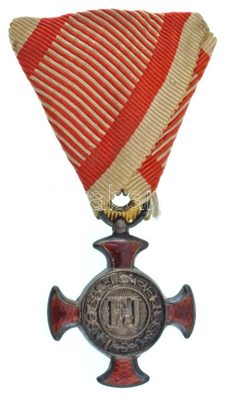 1869-1916. "Koronás Ezüst Érdemkereszt" karikán jelzett Ag kitüntetés mellszalag nélkül, függesztőkarikán fémjellel és gyártói jelzéssel (Wilhelm Kunz) T:AU / Hungary 1869-1916. "Silver Cross of Merit with Crown" hallmarked Ag decoration without ribbon, with hallmark and maker's mark (Wilhelm Kunz) on suspension ring C:AU